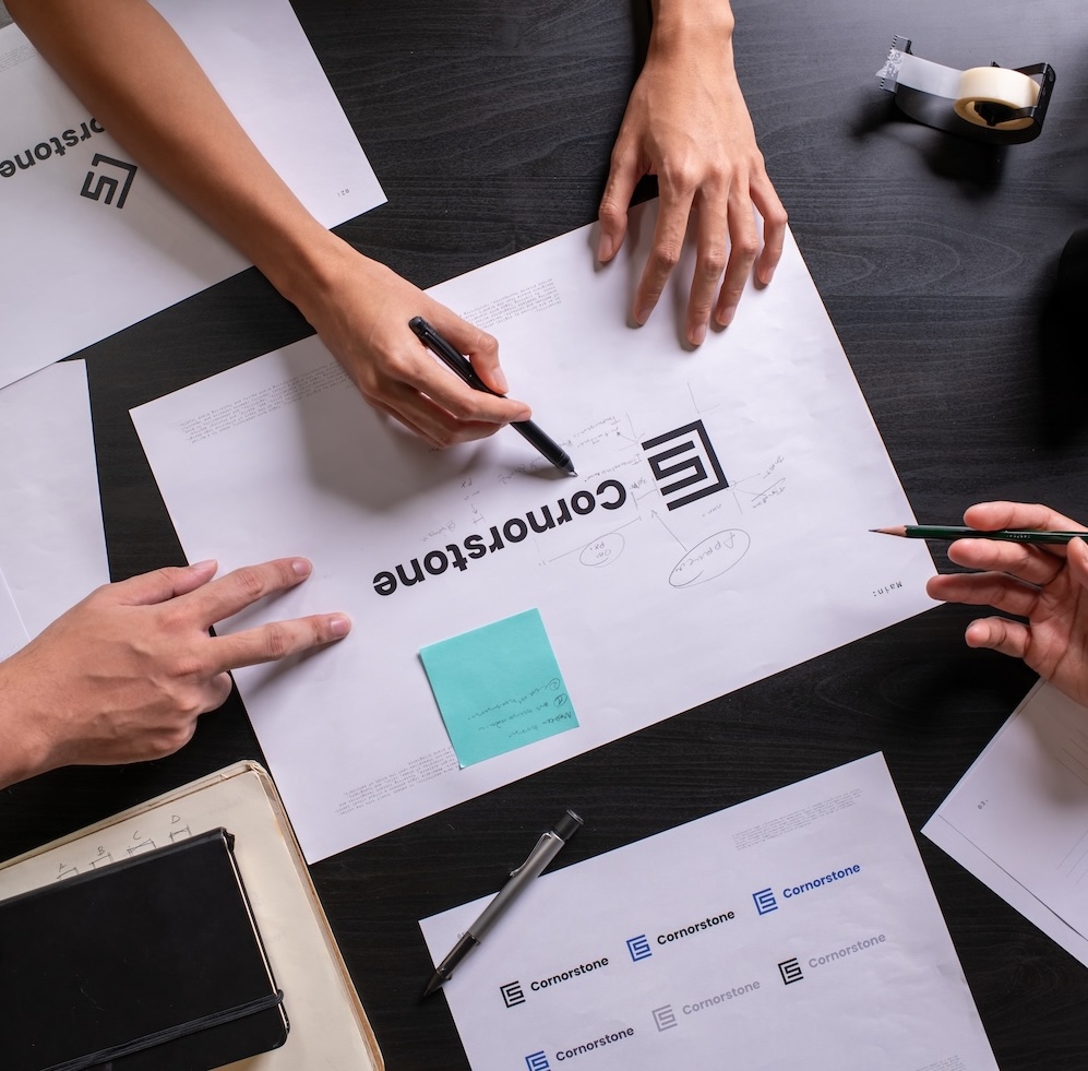 Mockups adaptés au secteur d’activité, palette de couleurs, présentation des polices et déclinaisons du logo pour une planche auto-générés en 1 click.
